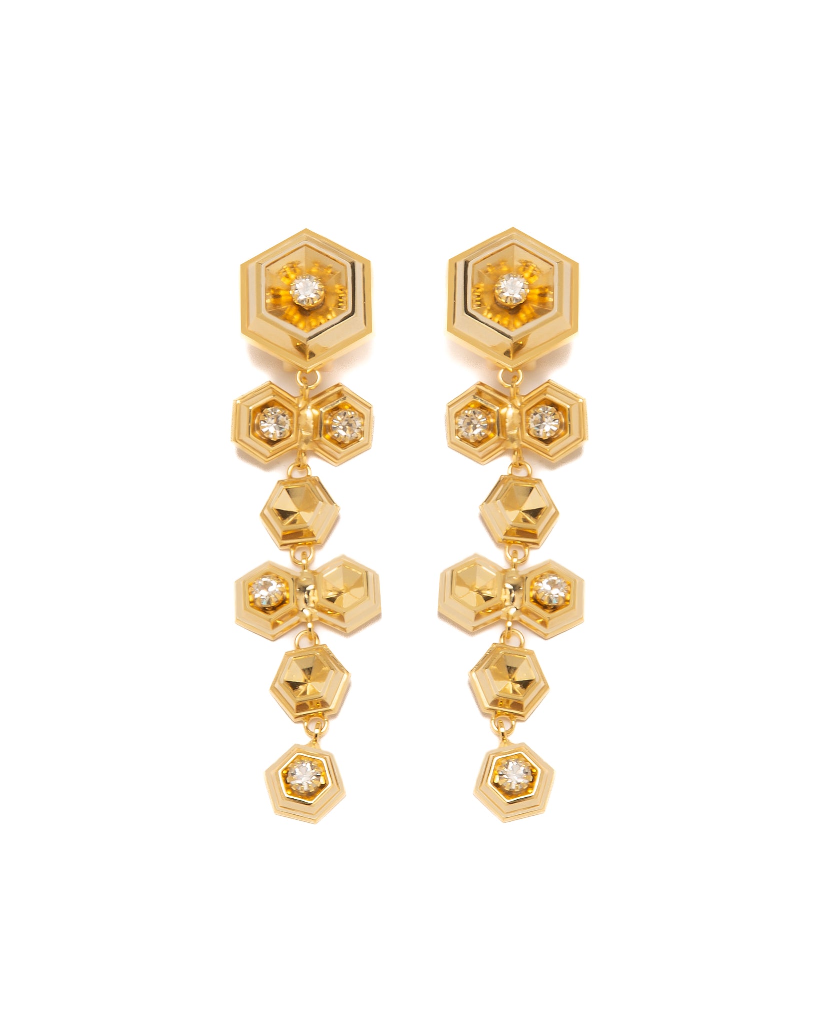 The Deco Earrings capture the bold geometry of Art Deco design with a modern, sculptural edge. Each earring features hexagonal shapes adorned with brilliant-cut crystals that catch the light from every angle. Lightweight yet statement-making, they bring refined radiance to any look, day or night.