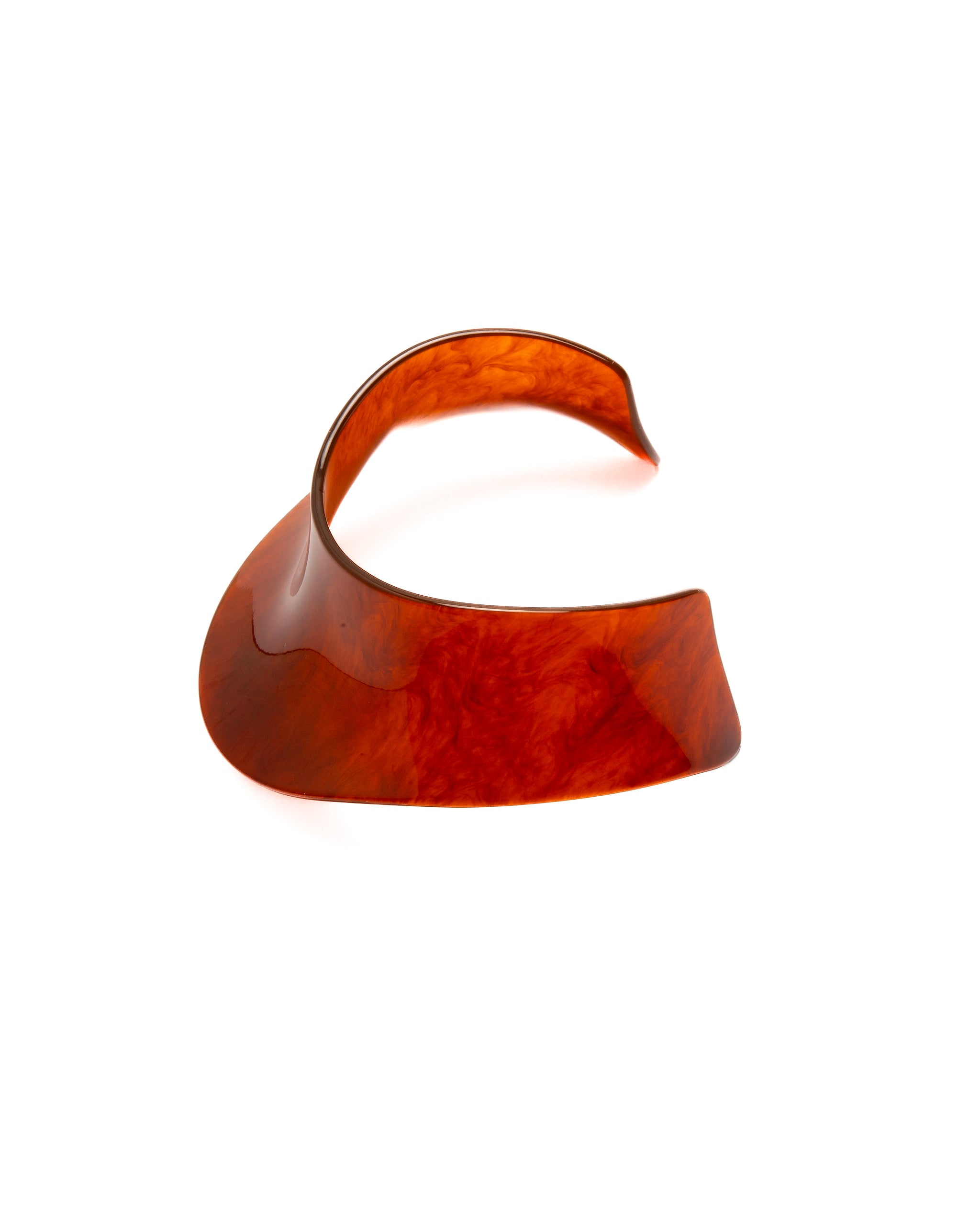 The Lila Necklace is a statement choker defined by its bold, sculptural shape and smooth amber-toned resin. Its curved silhouette sits elegantly along the neckline, creating a sleek, modern frame that enhances any look. Lightweight and striking, it brings a touch of contemporary artistry to both day and evening wear.