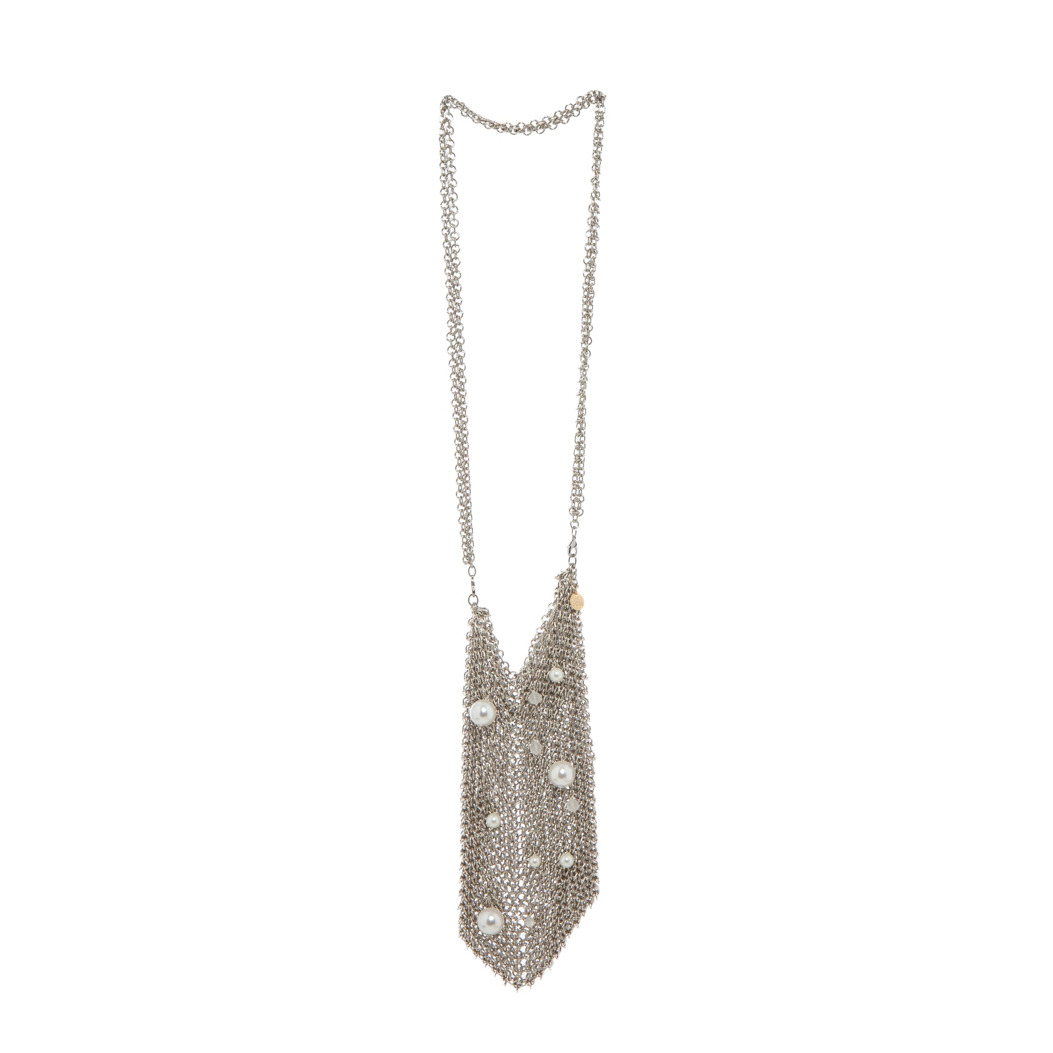 • Features: Handwoven metal mesh, soft  drape with pearl embellishment